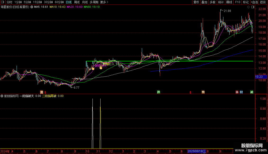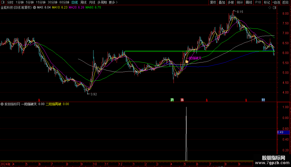 DRAWTEXT(ZBGS39,L*0.98,'一阳指破天'),COLORFF00FF;