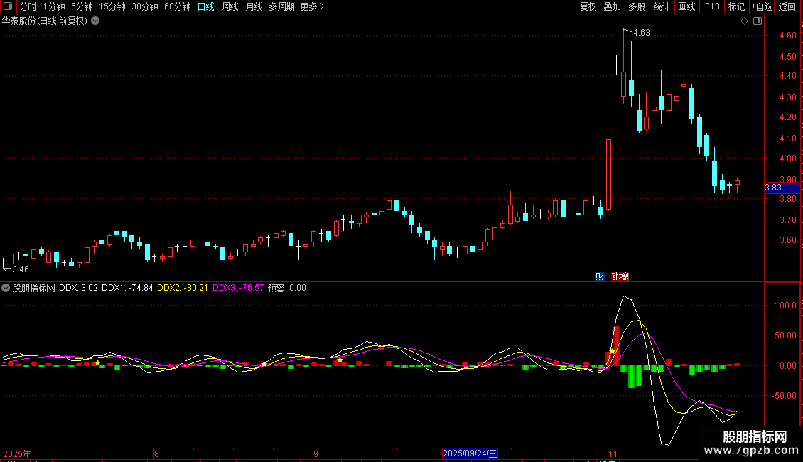 预警:DDX>0 AND MA(V,5)>MA(MA(V,5),5) AND CROSS(DDX1,DDX2),LINETHICK;