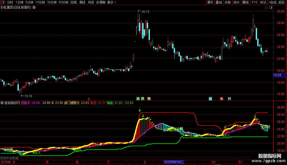 箱底:MA(REF(LLV(上收,30),1),2),COLOR00FF00,LINETHICK2;
