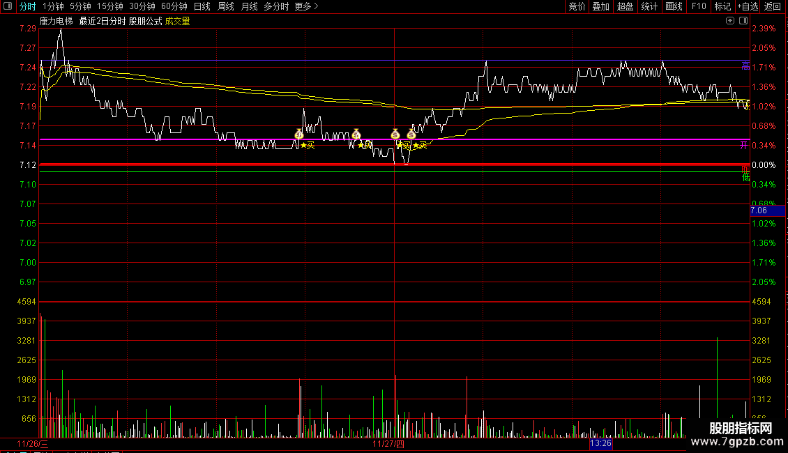 XG1:=CROSS(DYNAINFO(7),CC1) AND V>VV1 AND ZF1;