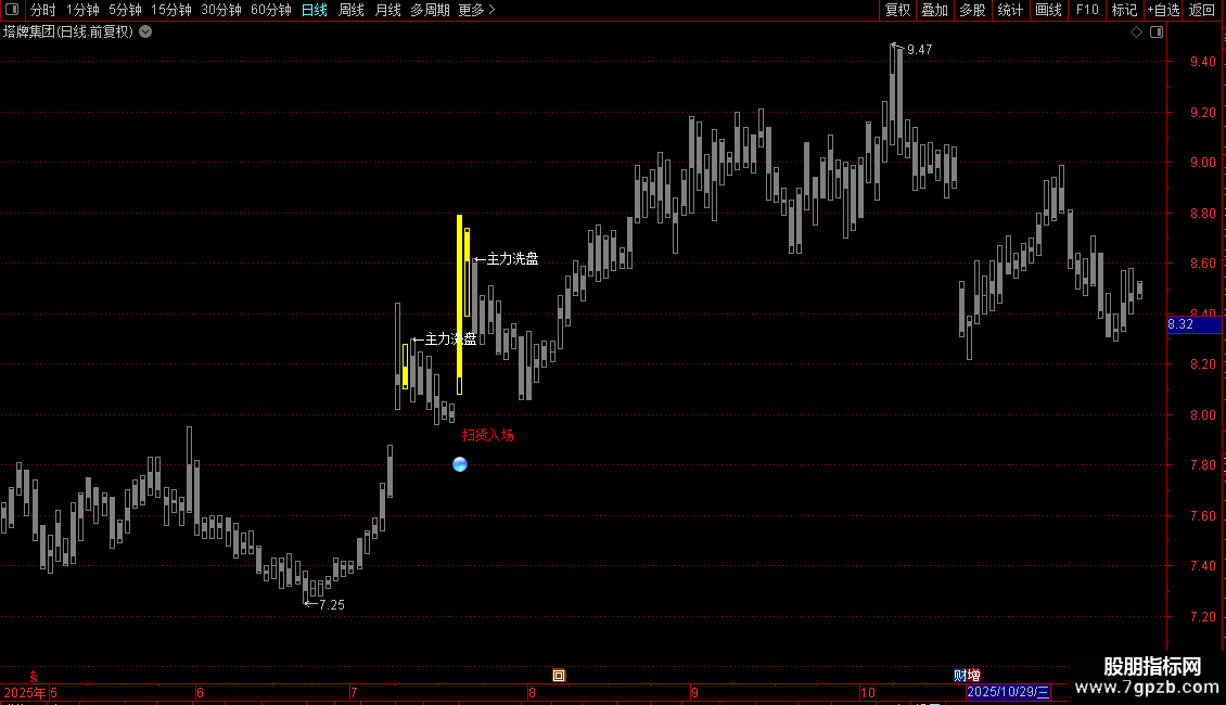 DRAWTEXT(REF(HG7,1)=3 AND HG7=2,H,'←主力洗盘'),COLORWHITE;