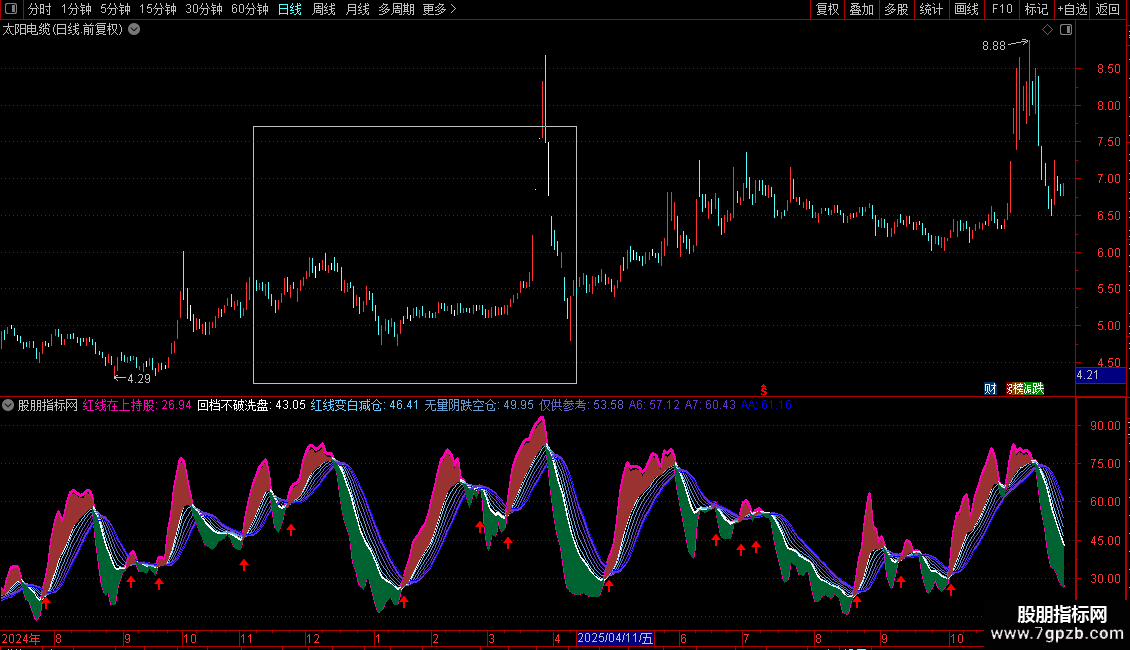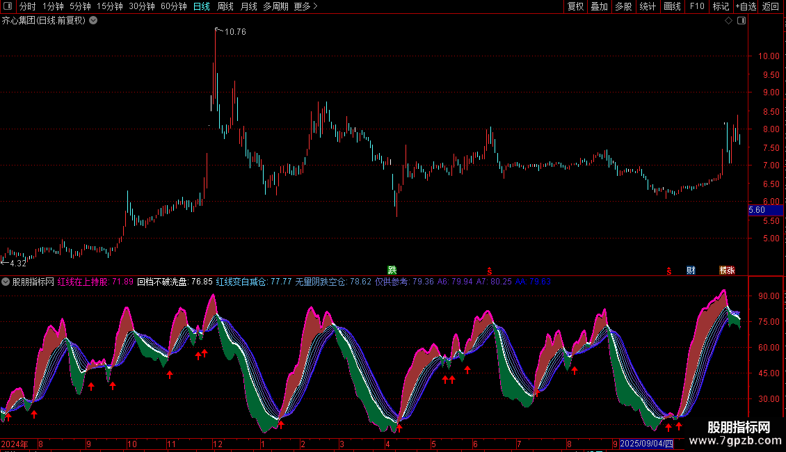 DRAWICON(CROSS(红线在上持股,A7),(红线在上持股 * 0.80),1);