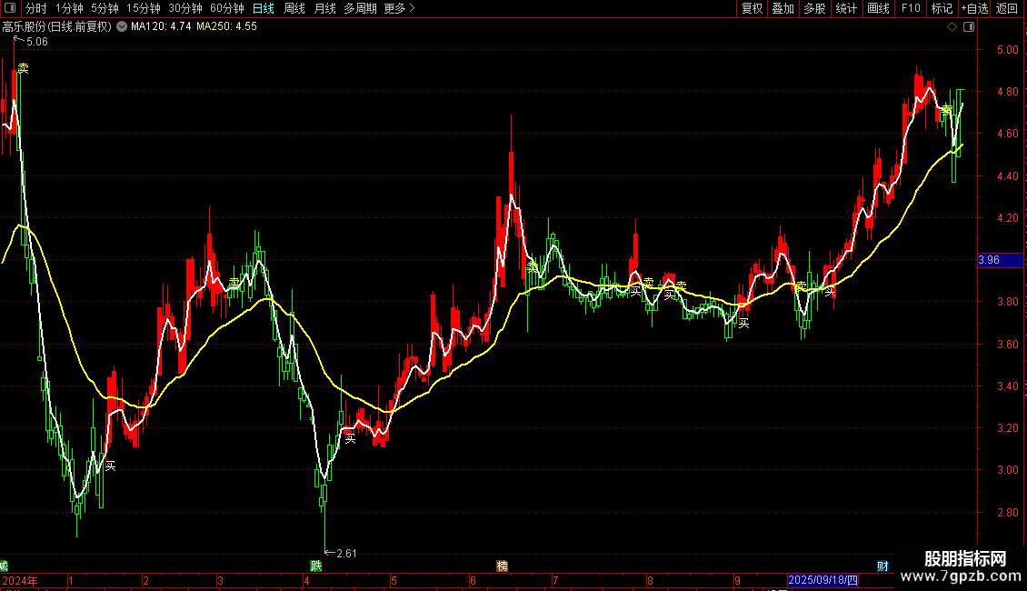 2. 金叉买死叉卖:MACD金叉当日出现"买"字信号为入场点,死叉"卖"字为出场点