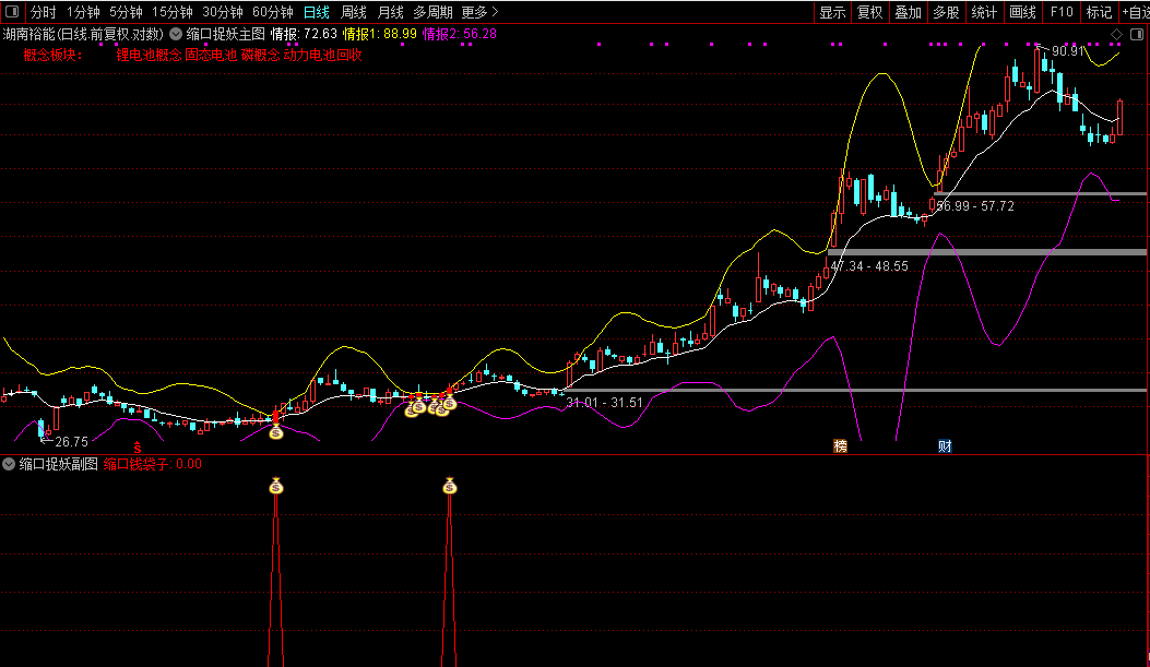 当多空布林带缩口时结合MACD判断更好。往往捉到大牛股。