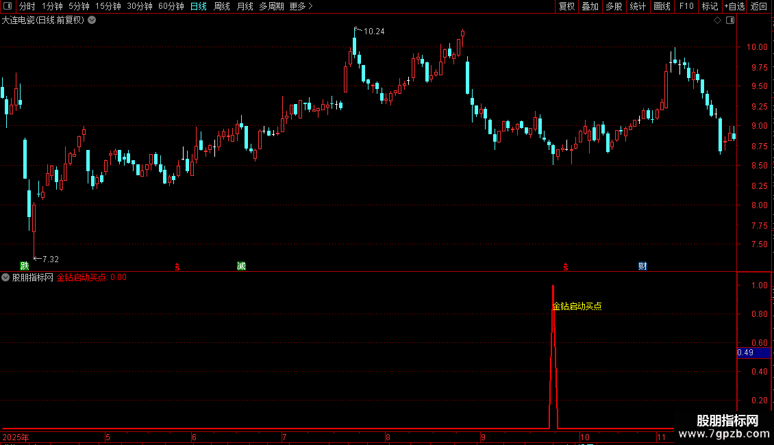 操作:金钻启动买点信号出现后,先加入自选股。待拉升时再买入。