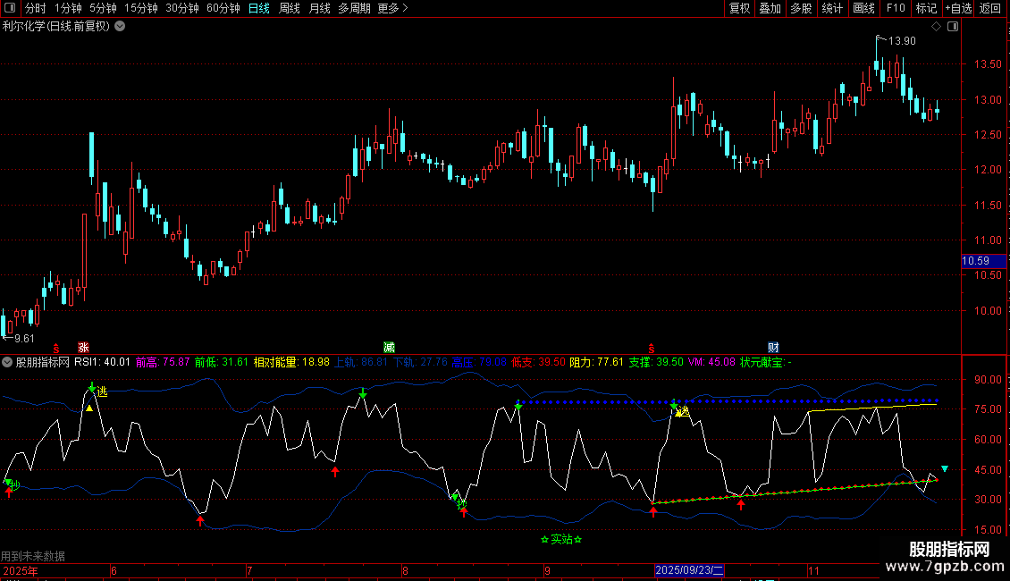 DRAWTEXT(CROSS(UPPER,RSI1),UPPER,'逃'),COLORYELLOW;