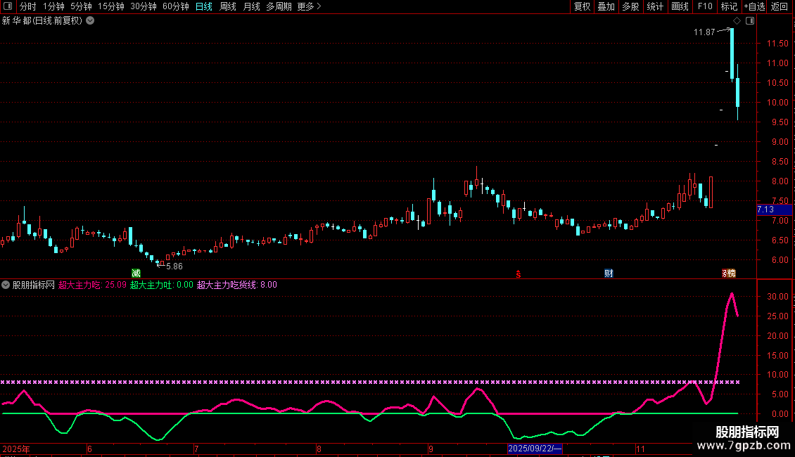 输出超大主力吃货线:8,COLORFF80FF,线宽为2,CROSSDOT