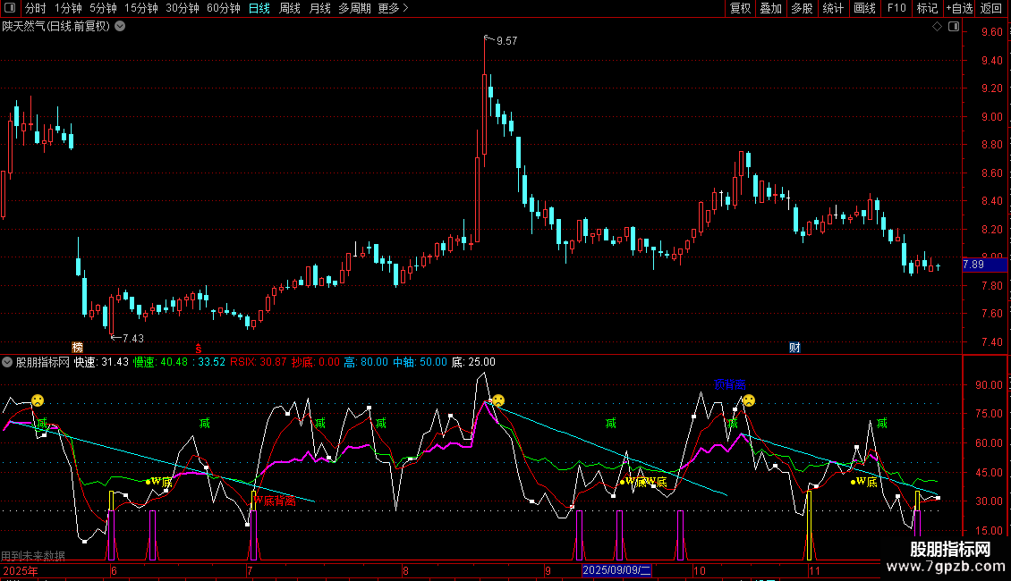 W底2:=A3>=2 AND A3<10 AND CROSS(快速,RSIX) AND RSIX<50 AND RSIX>=25;