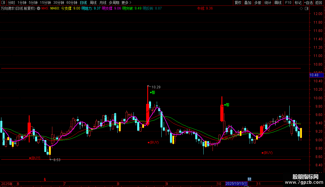 支撑:MA(REF(LLV(C,30),1),2),COLORBLACK;