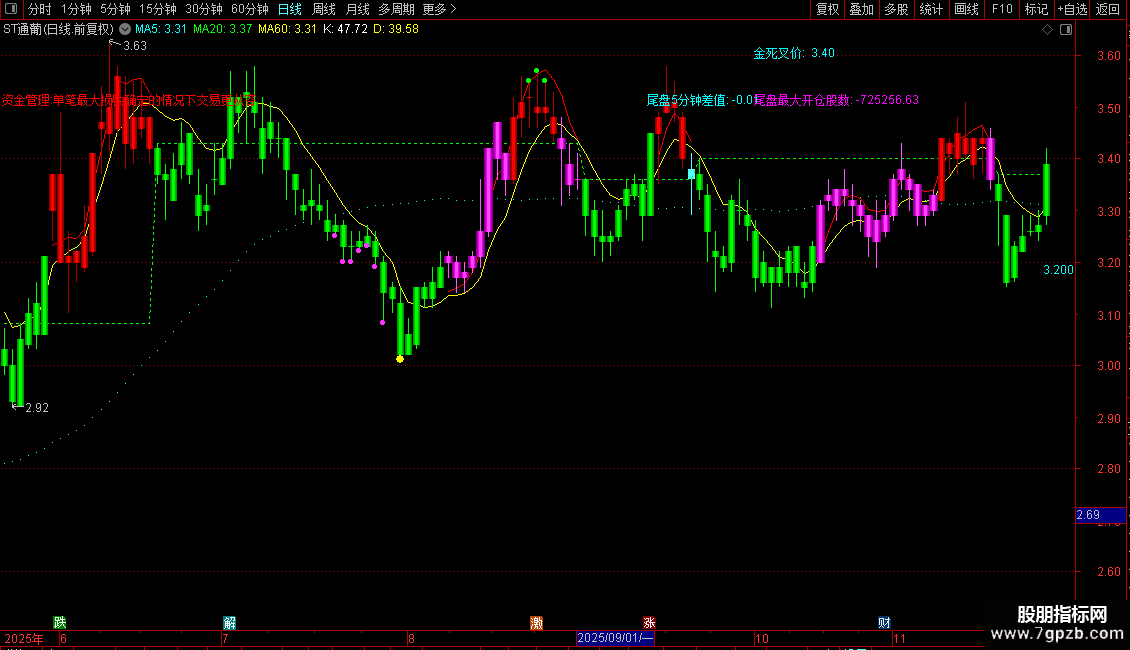 DRAWTEXT_FIX(1,0.7,0.09,0,STRCAT('尾盘最大开仓股数: ',CON2STR(尾盘开仓,2))),COLORMAGENTA;