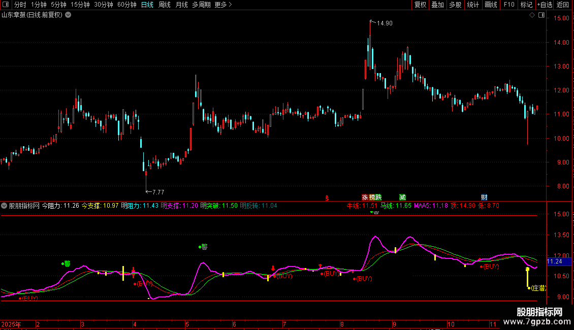 支撑:MA(REF(LLV(C,30),1),2),COLORBLACK;