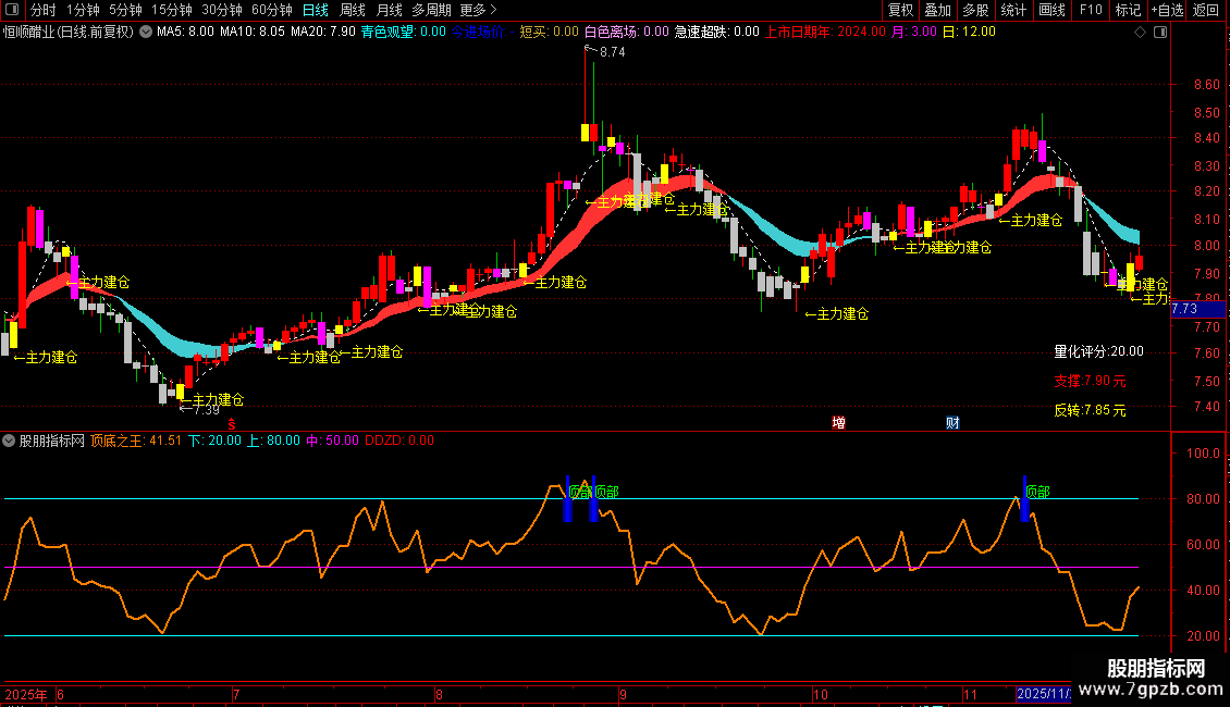 2.主图主力建仓信号与副图底部信号共振是确定性见底信号,见底后主图出现主力建仓信号为加仓买点。