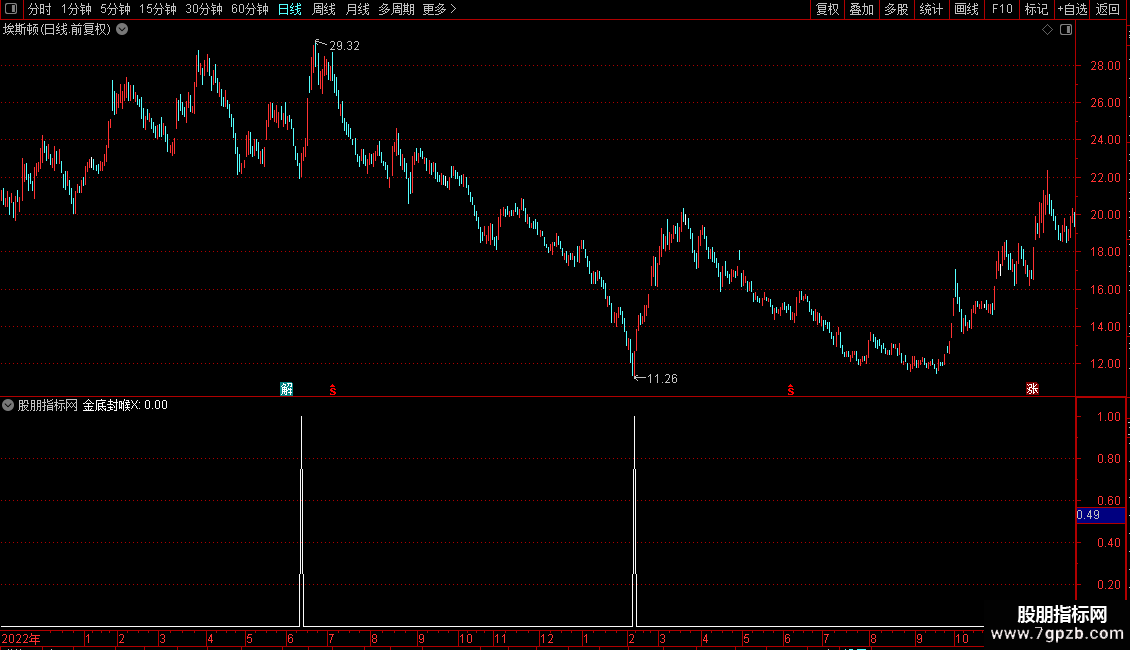 XG2:=(HIGH-MAX(CLOSE,OPEN))/(MIN(CLOSE,OPEN)-LOW)<=0.03;
