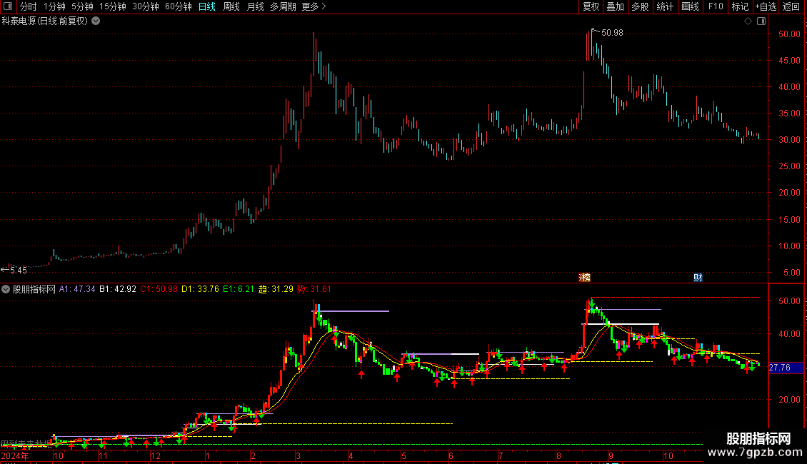 只有经过长期实践和在牛、熊市中经得起时间考验的指标才是好指标,该指标通过“趋和势”两条线的走势和其它线段及买卖提示的辅助,可以成功率极高的抓到启动初期大牛股。公式简单实用,配合成交量一起使用会起到事半功倍的效果。慢慢揣摩,必有收获;如果突破E1,并且回踩不破,将有一波主升行情。 如果突破C1,并且回踩不破,一波主升行情已经展开。