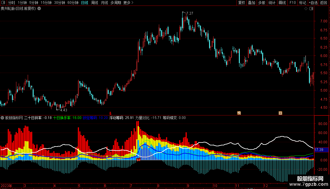 力量对比:锁定筹码-浮动筹码,COLORSTICK;