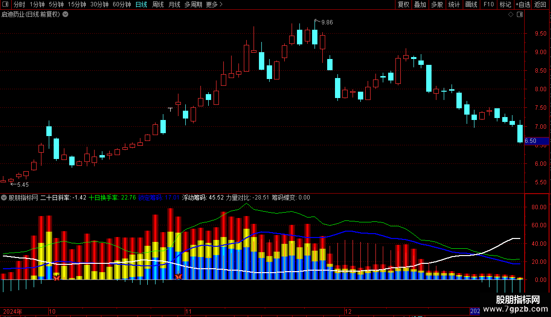 指标通过计算股票筹码分布和移动平均线,分析市场力量对比和潜在交易机会。主要功能包括: