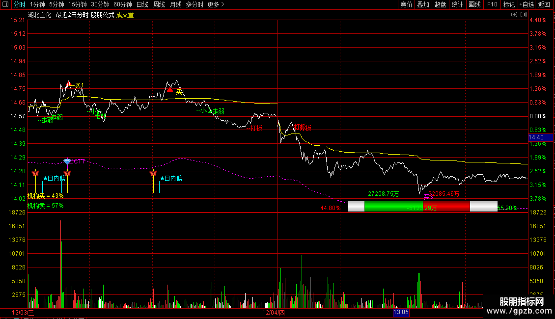 分时均价线:=SUM(C*V,240)/SUM(V,240),DOTLINE,COLORFFFFFF,LINETHICK1;