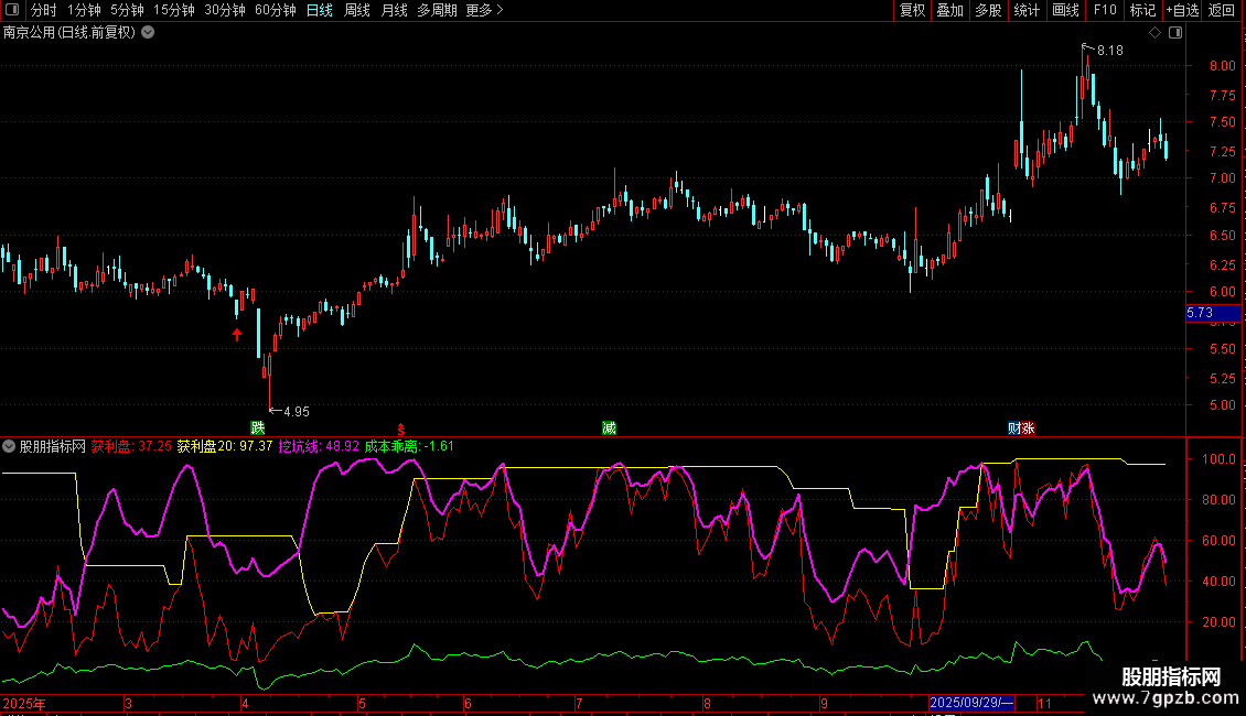 挖坑线:EMA((100+获利盘-获利盘20),3),COLORMAGENTA,LINETHICK2;