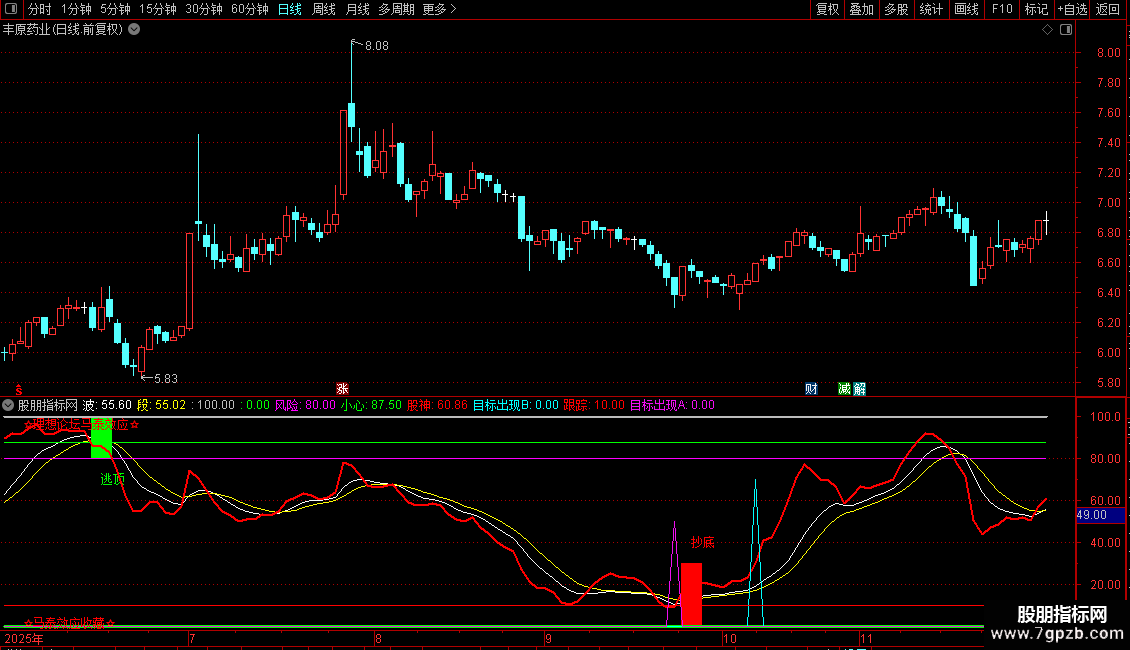 说明:股神亮剑为前人创作网上渠道收集,马泰效应实验室收集数万指标库中为数不多精品之一。