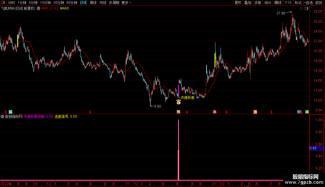 DRAWTEXT(共振条件,L*0.98,'↖共振妖股'),COLORYELLOW;