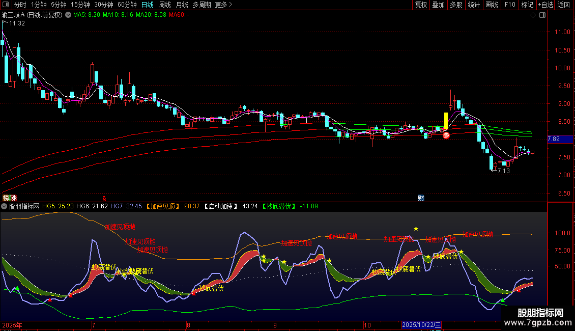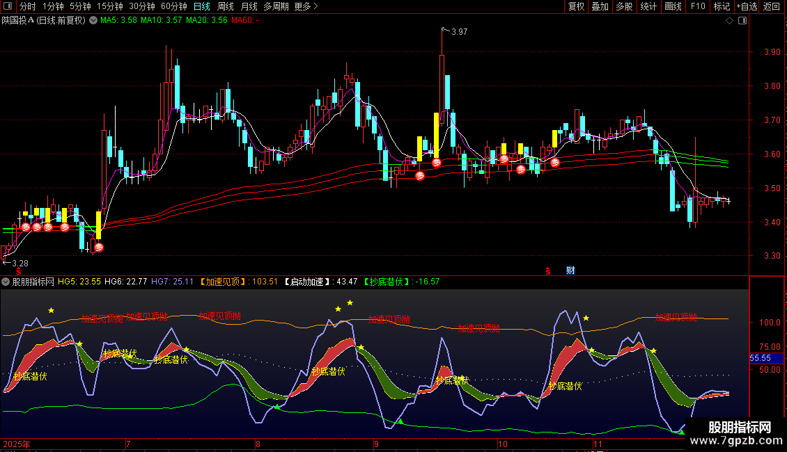 DRAWTEXT(CROSS(HG7,HG11)&&HG5>HG6,HG5-0.05,'抄底潜伏'),COLORYELLOW;