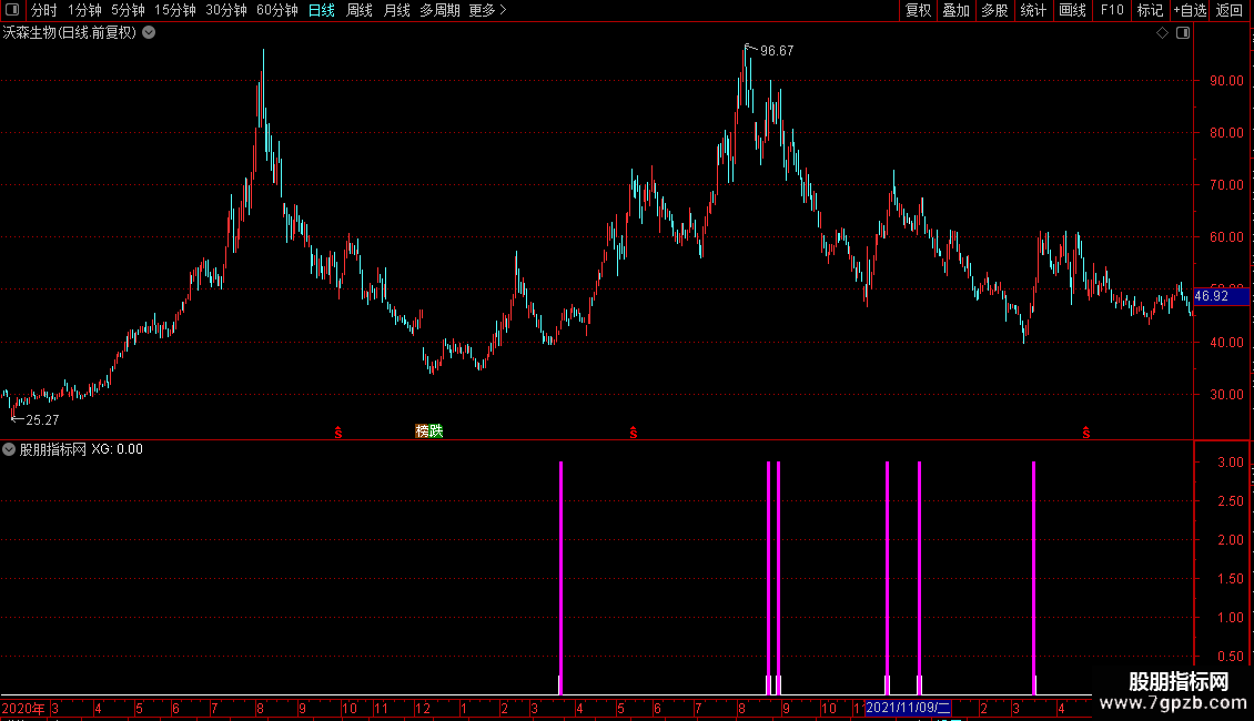D5:=CROSS(0.9,1/VOL*1000>0 AND KDJ.J<0) OR CROSS(0.9,1/VOL*1000>0.01 AND KDJ.J<0);