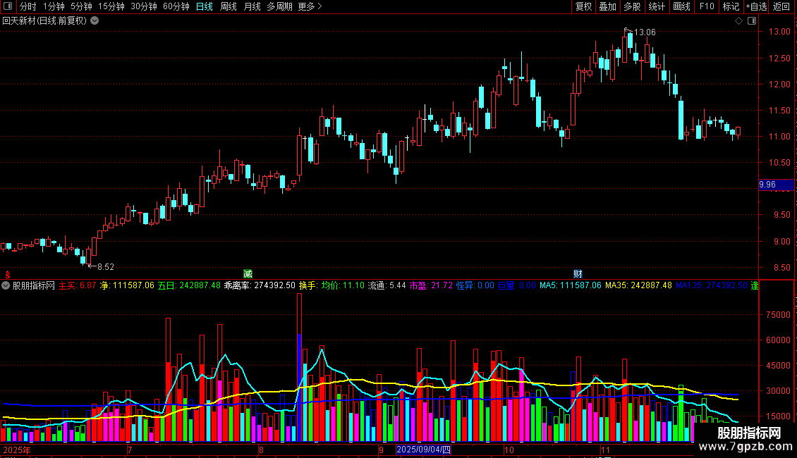上探量: STICKLINE(VAR6>VAR5 AND VAR6>VAR7,0,VAR6,2.0,0),COLORMAGENTA;