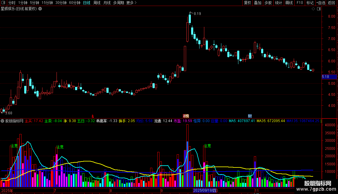 输出怪异:收盘价=收盘价 AND 换手>=25,COLORFF6600