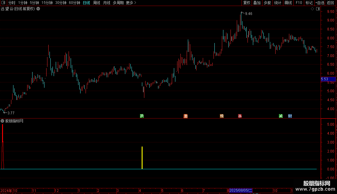 2\. 黄色柱状图:黄色柱状图表明市场正处于底部区域范围。它是判断市场是否接近底部的重要参考,提示投资者应开始密切关注个股动向。
