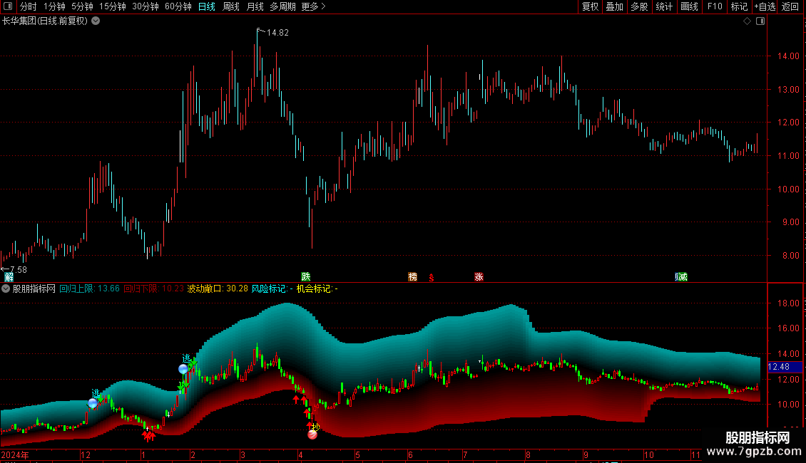 涨过头:=IFF(HIGH>回归上限,1,0);
