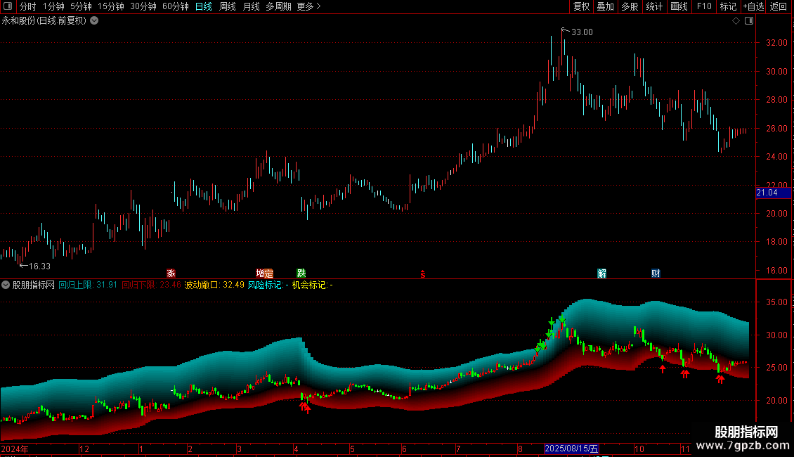 回归上限:IFF(绘图范围,天线,DRAWNULL),COLOR989800,LINETHICK2;