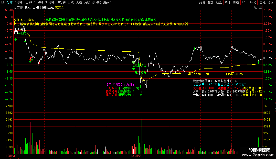 DRAWTEXT_FIX(ISLASTBAR, 0.92, 0.82, 0, STRCAT(STRCAT('大额强度:', CON2STR(大额强度, 1)), '%')), COLORYELLOW;