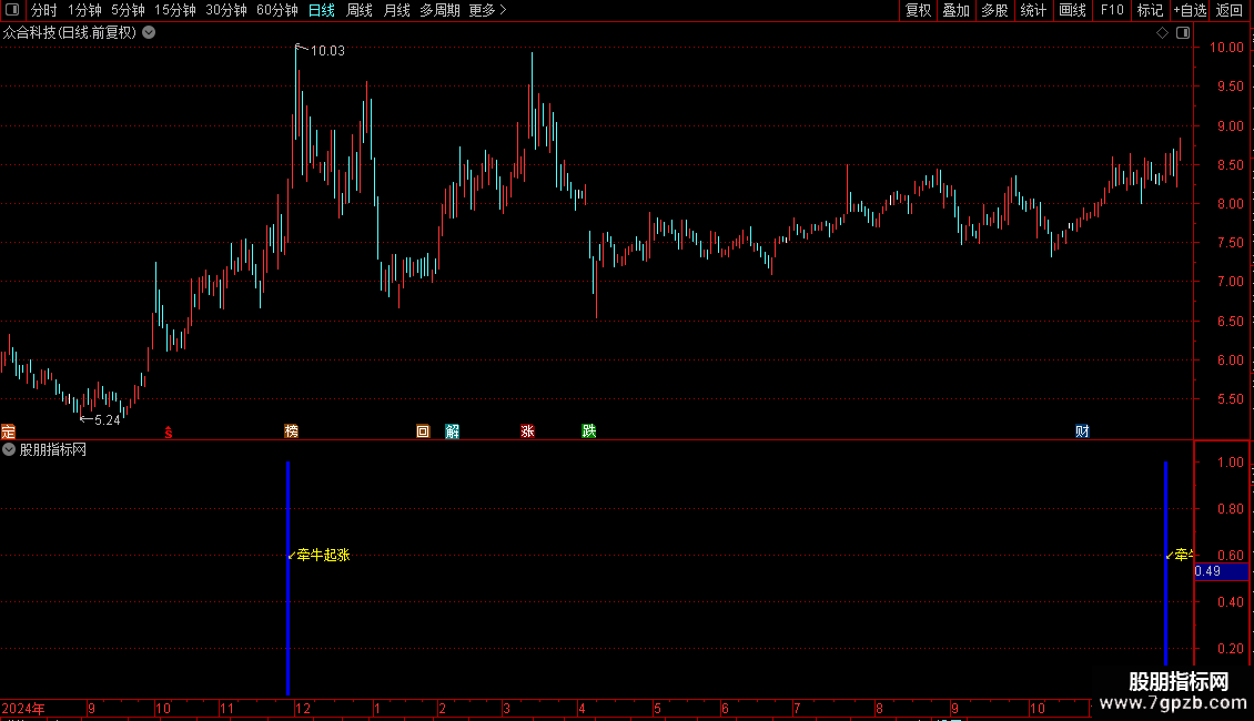 指标主要功能是通过多种技术指标分析股票价格走势,识别潜在的上涨趋势。核心操作策略包括: