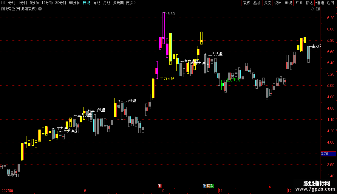 DRAWTEXT(REF(VAR7,1)=3 AND VAR7=2,H,'←主力洗盘'),COLORWHITE;