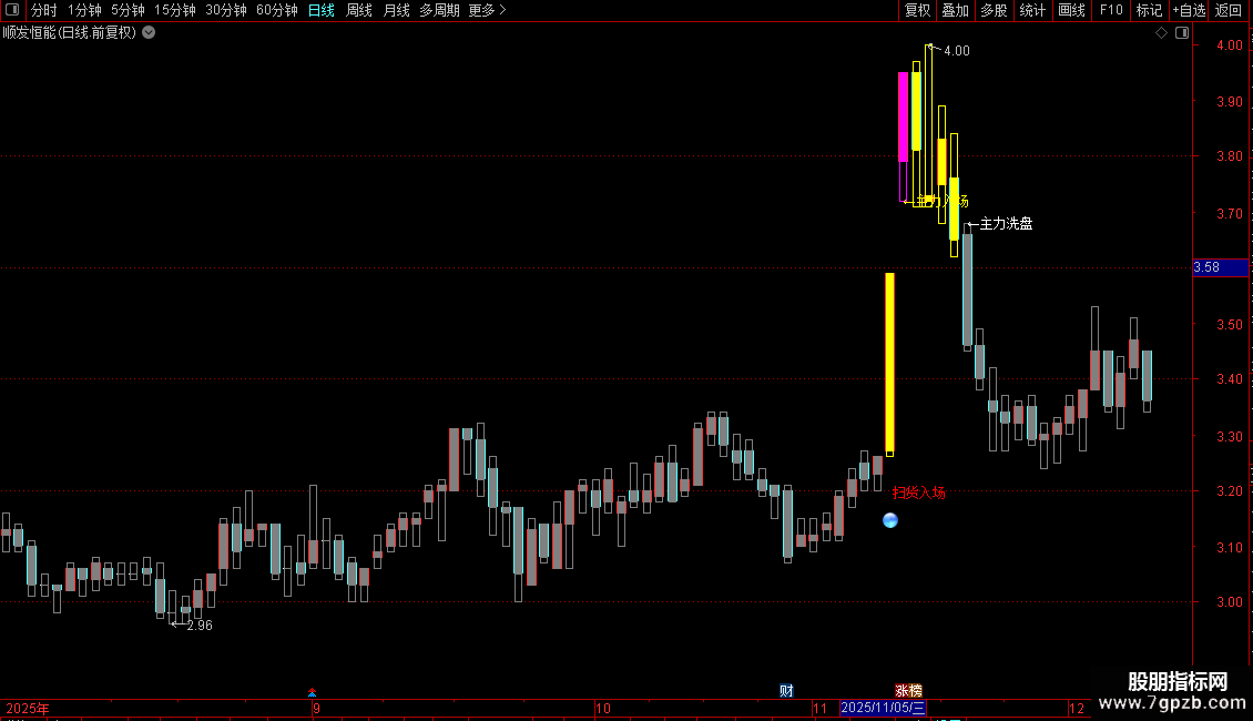 DRAWTEXT(REF(VAR7,1)=3 AND VAR7=4,L,'←主力入场'),COLOR00FFFF;