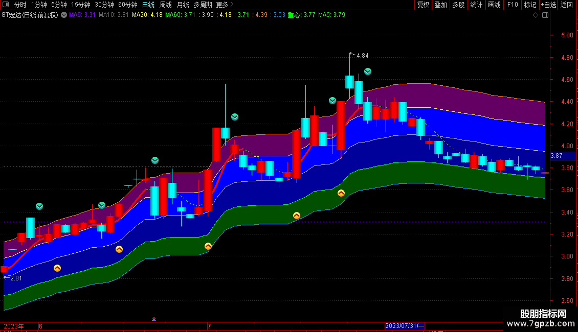 DRAWBAND(止盈,RGB(100,0,100),止盈*1.05,RGB(100,0,100));