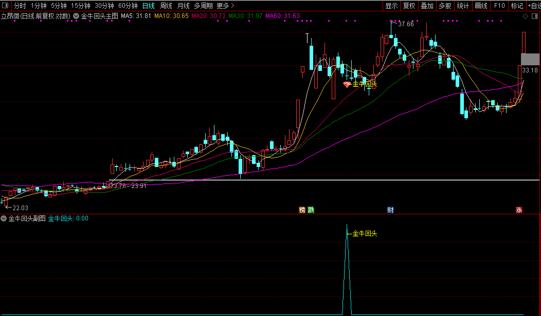 1:该指标选股逻辑是前期有主力异动后连续拉升几个涨停板后,然后回头调整不破前期周阳线开盘价,小幅度横盘磨底,伴随长上影和长下影,此时主力大概率是在吸带血的筹码,在此放大量或倍量,也就是回头接人结束了,开启下一波行情。