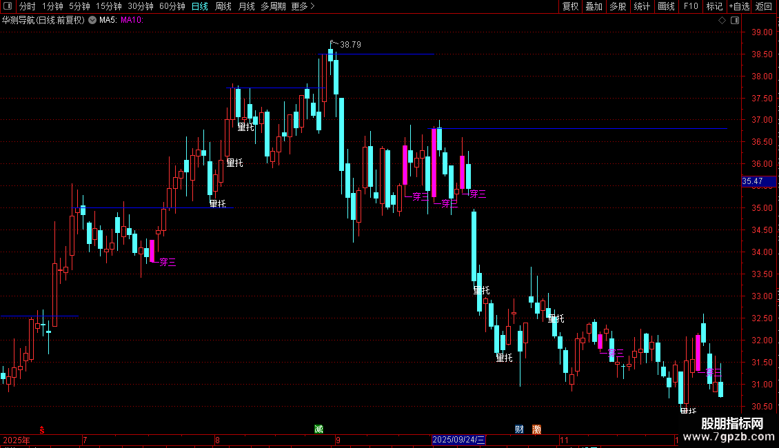 一穿三:=MA1>O AND MA2>O AND MA3>O AND MA1<C AND MA2<C AND MA3<C AND CLOSE>OPEN ;
