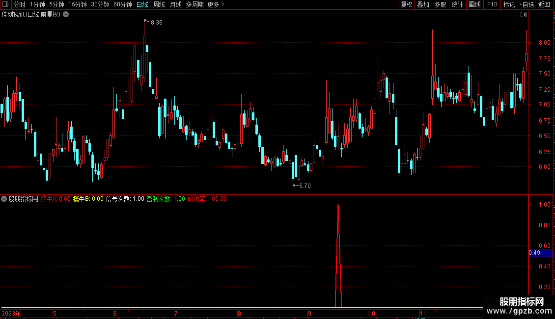 成功率:盈利次数/信号次数*100,NODRAW,COLORRED;