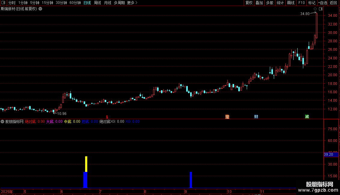 可以看出股票超跌程度的指标,网上淘的,物极必反的原理。指标显示简单易懂。