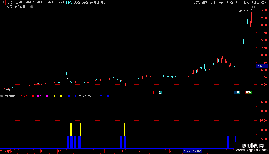 绝对底XG:REF(绝对底,1)>0 AND 绝对底=0;