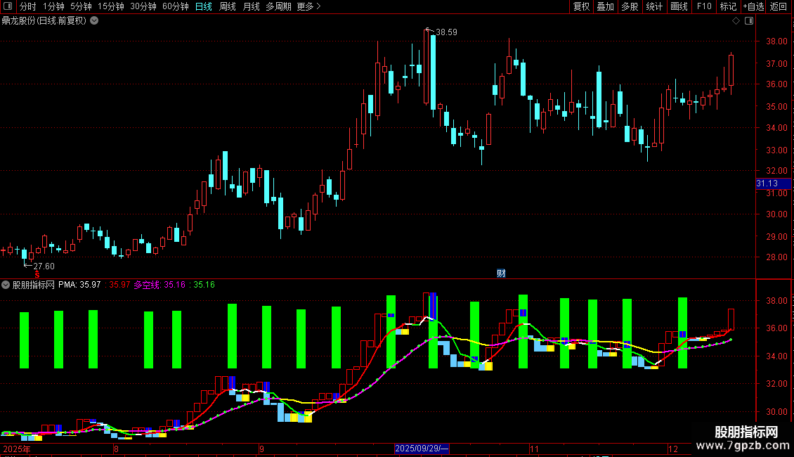 IF(A,多空线,DRAWNULL),COLOR33FF33,POINTDOT,LINETHICK4;
