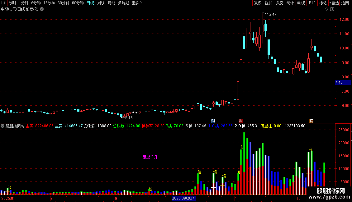 DRAWTEXT(倍量柱,VOL*1.05,'倍'),COLORYELLOW;