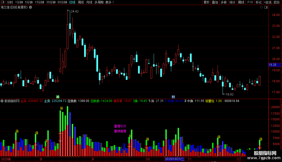 TJ2:=H=L AND C<REF(C,1) OR C<REF(C,5) OR C<REF(C,9) OR C<REF(C,17);