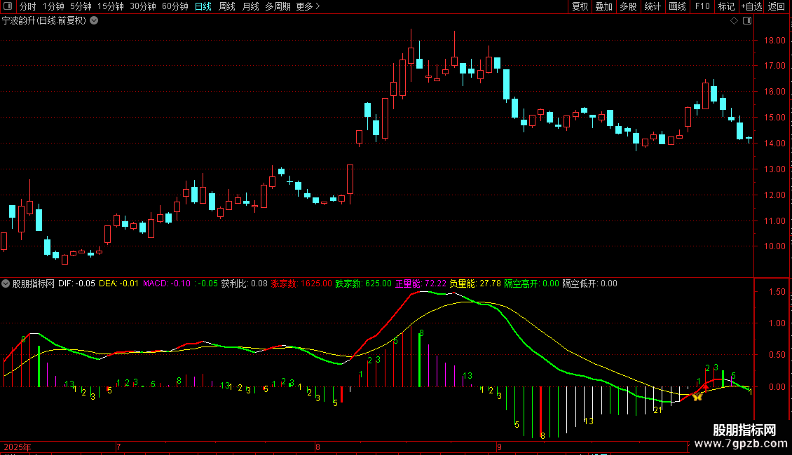 DRAWTEXT(BARSLAST(TJ)=1,MACD2,'1'),COLORYELLOW;