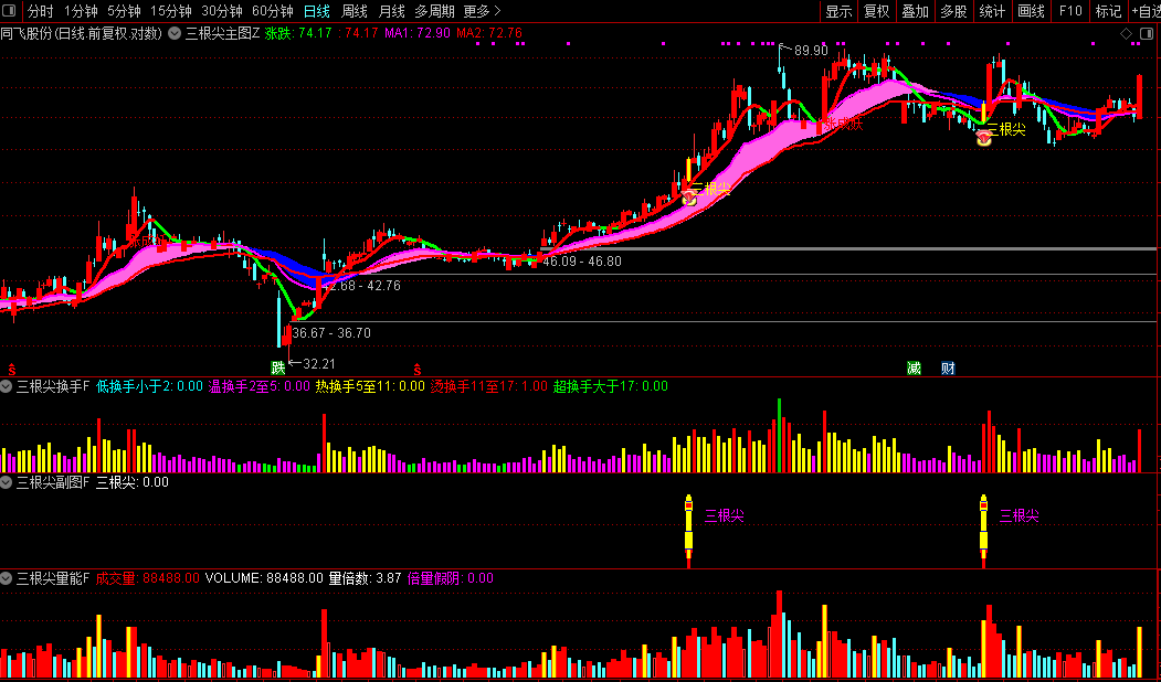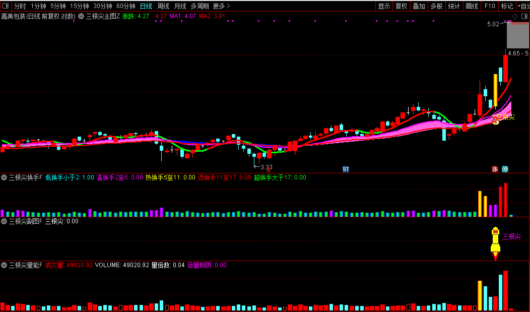 很多人认为龙头战法难以掌握,主要原因在于未准确把握资金动向。“三根尖”的本质正是将主力抢筹行为量化为可识别的信号: