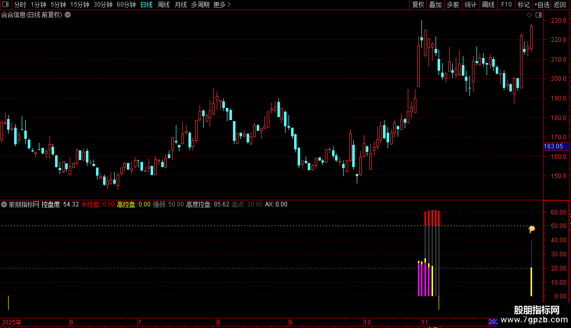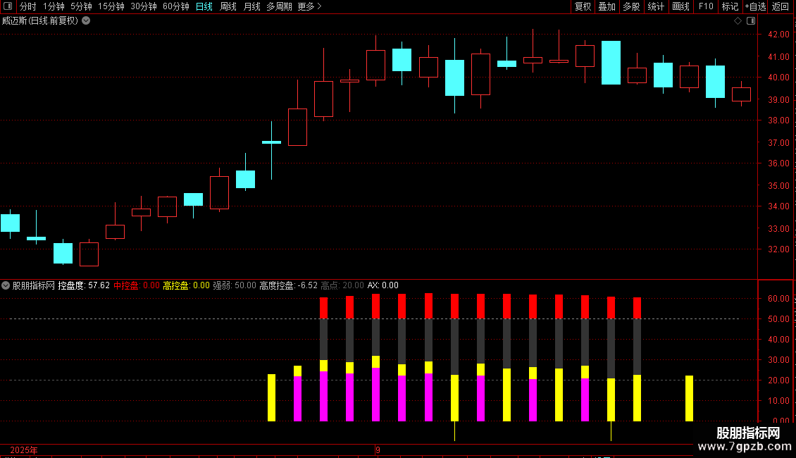 使用方法:适用于日线级别,重点关注“控盘度”突破60/80阈值、高度控盘值突增及底部黄色信号柱。结合量能与价格形态,可有效过滤假信号,提升对主力操盘节奏的把握能力。