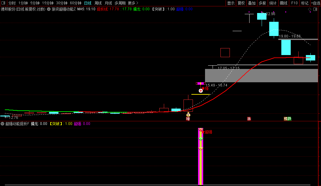 “超强动能”指标(亦称“最强动能”) 是一款集动能分析、强势信号识别、操盘线指引及趋势跟踪于一体的综合性技术辅助工具。其核心目标是识别市场中最高级别的动能信号,为使用者提供清晰的交易决策支持。