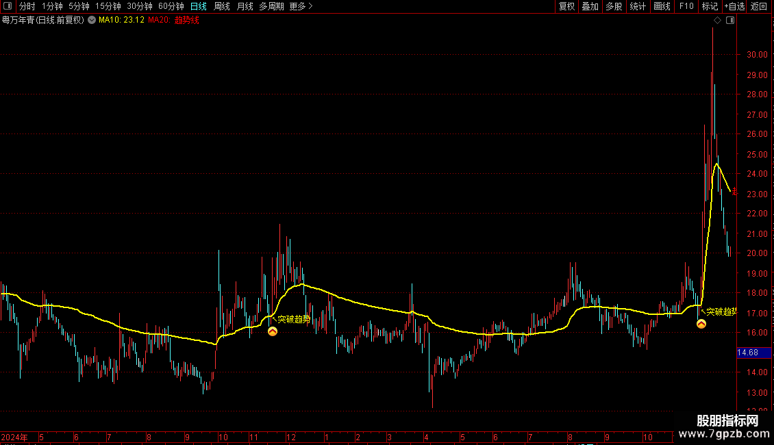 回踩确认:=LOW>=趋势线*(1-回踩偏差/100);