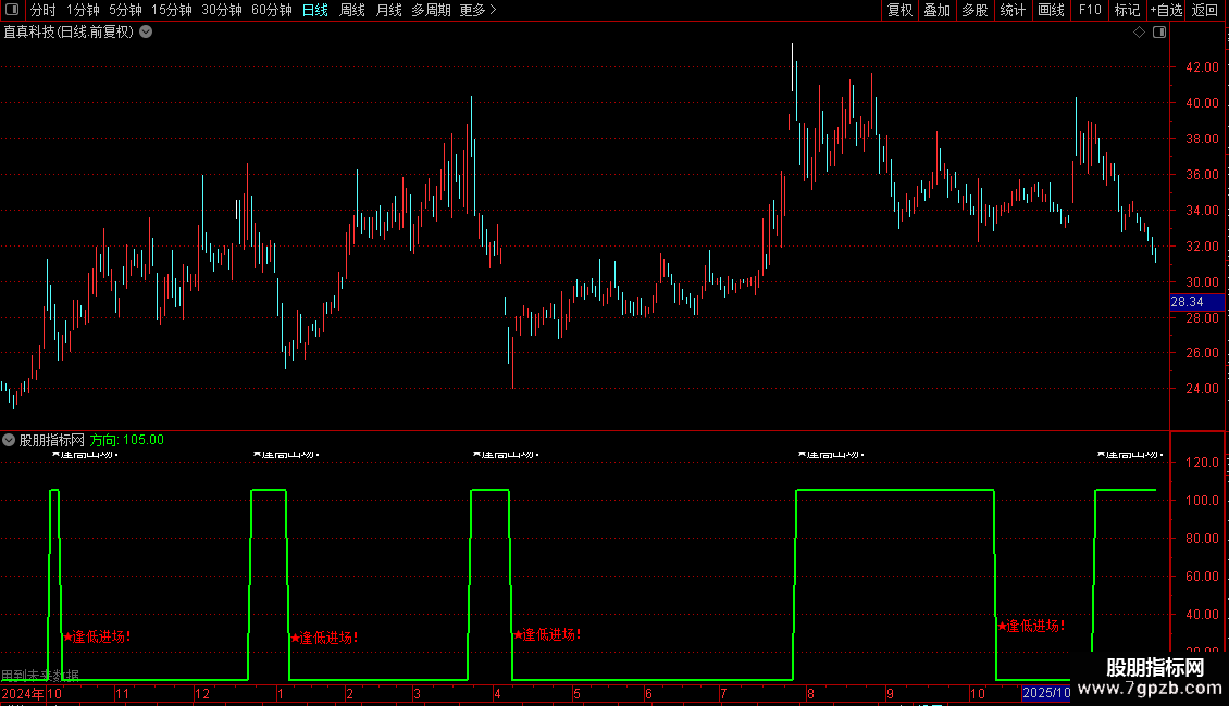 DRAWTEXT(CROSS(抄底线,方向),抄底线,'★逢低进场!') ,COLORRED;